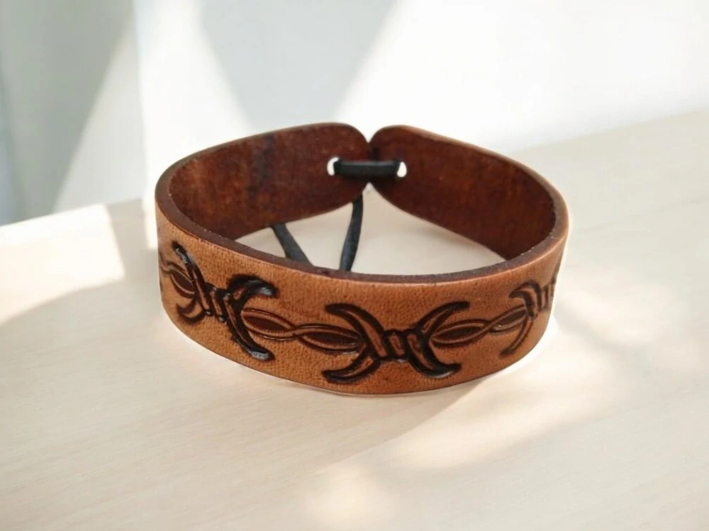 Tento elegantní kožený náramek je ideálním doplňkem pro každou příležitost. Je zdobený geometrickým vzorem a vyrobený je z kvalitní pravé kůže. Náramek nabízí nejen stylový vzhled, ale také dlouhou životnost. Zapínání je na řemínek, což umožňuje nastavení dálky na 19-22 cm. Tento náramek je skvělou volbou pro ty, kteří hledají kombinaci klasického stylu a moderního designu. Je ideální jako dárek pro blízké nebo jako stylový doplněk k vašemu vlastnímu outfitu.